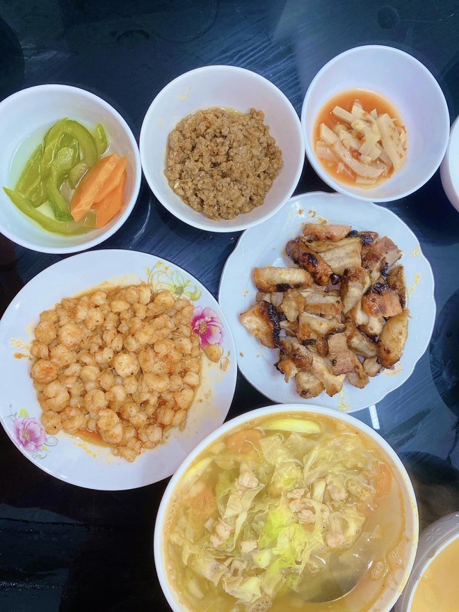 Giữ vững tinh thần này nên những mâm cơm Phương Anh nấu khiến ai cũng phải trầm trồ. Dù chỉ ở một mình nhưng thông thường, Phương Anh sẽ nấu khẩu phần cho khoảng 3-4 người để một số người bạn ở gần đó qua ăn cùng. Mâm cơm nào cô nàng cũng cố gắng nấu đủ các món canh, rau, thịt, nhìn thôi đã thấy ngon mắt.