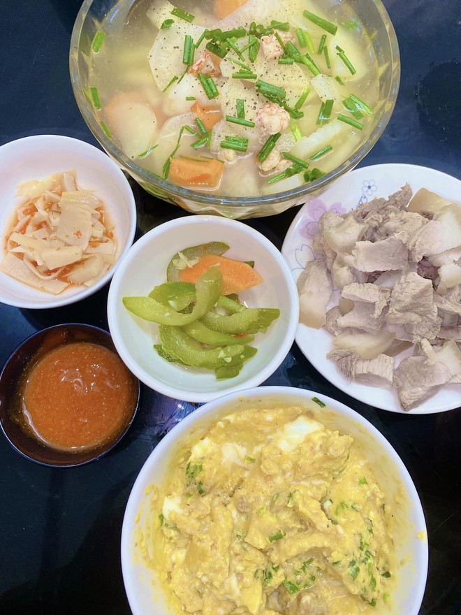 Mâm cơm của cô nàng dù chỉ là những món ăn đơn giản nhưng đủ sắc đủ vị