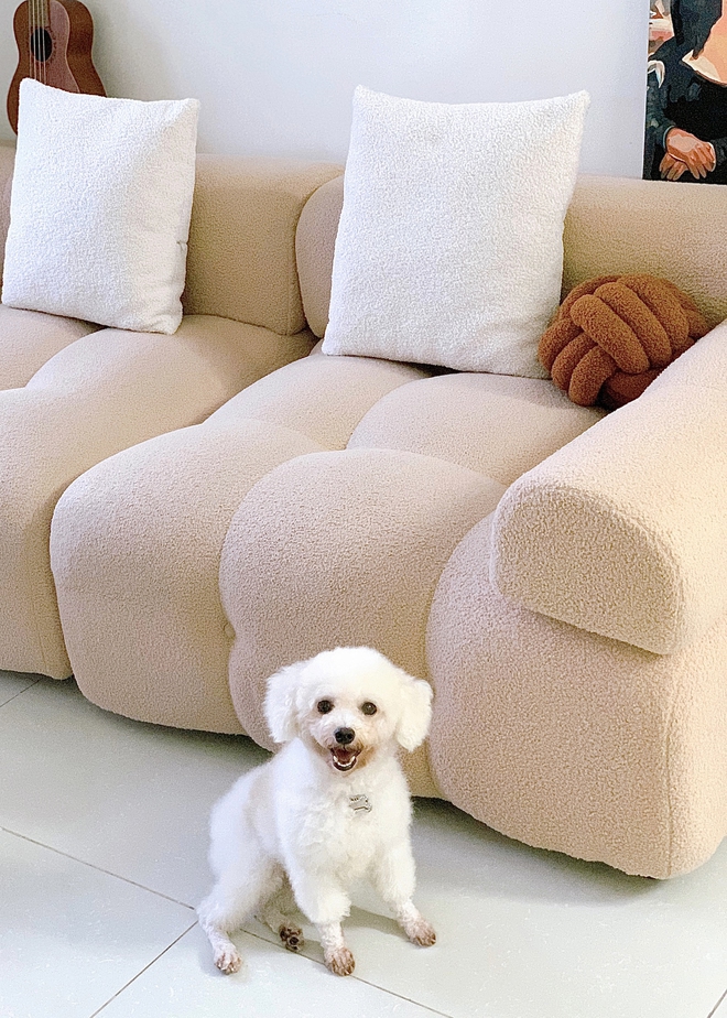 Hiện Trinh đang làm việc tại nhà, công việc đòi hỏi sự sáng tạo nên cô đặt yêu cầu cao về chất lượng không gian sống. Dù là căn nhà đầu tiên đi thuê nhưng ý định này đã được họ ấp ủ từ lâu. Bởi vậy, cô rất kỹ trong khâu chọn nhà, môi trường sống xung quanh cũng như trang hoàng cơ ngơi.