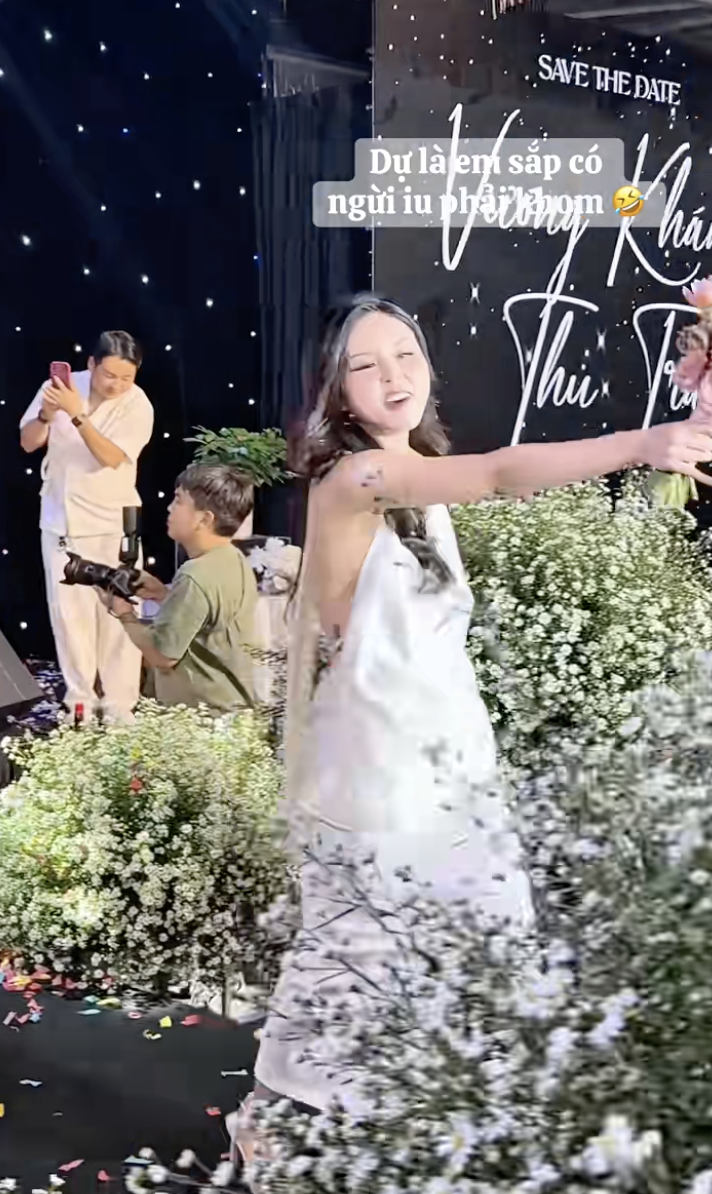 Về phía Ngọc Ánh, cô nàng còn tiết lộ đoạn clip bản thân chính là người bắt được hoa cưới trong đám cưới hôm ấy. Mỹ nhân này cho hay mình vẫn còn độc thân nên sau khi bắt hoa từ cô dâu, chú rể cũng tò mò muốn biết người yêu tương lai mình là ai.