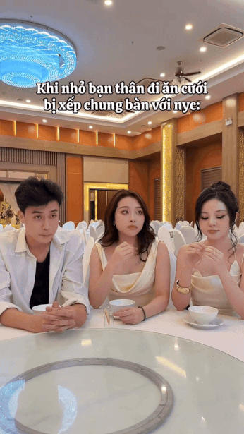 Trong một đoạn clip khác, Phan Ánh Ngọc - TikToker 1,9 triệu người theo dõi lại chính là nhân tố ngồi giữa Vương Anh Ole và Ngọc Ánh trên bàn tiệc. Cô nàng bày tỏ: “Không khí ở đây thật ngột ngạt” bởi cả hai người đều không ai nói bất cứ câu nào với nhau.