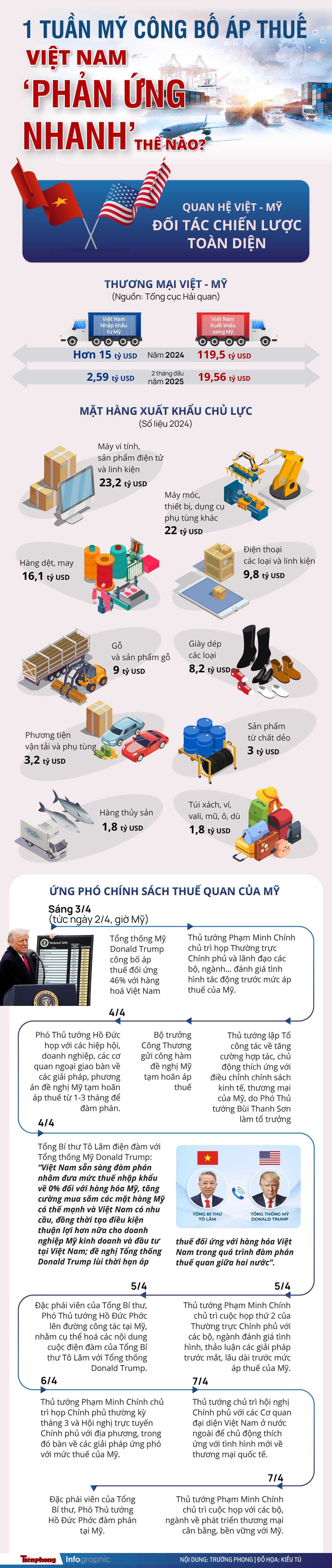 1 tuần Mỹ công bố áp thuế, Việt Nam ‘phản ứng nhanh’ thế nào?