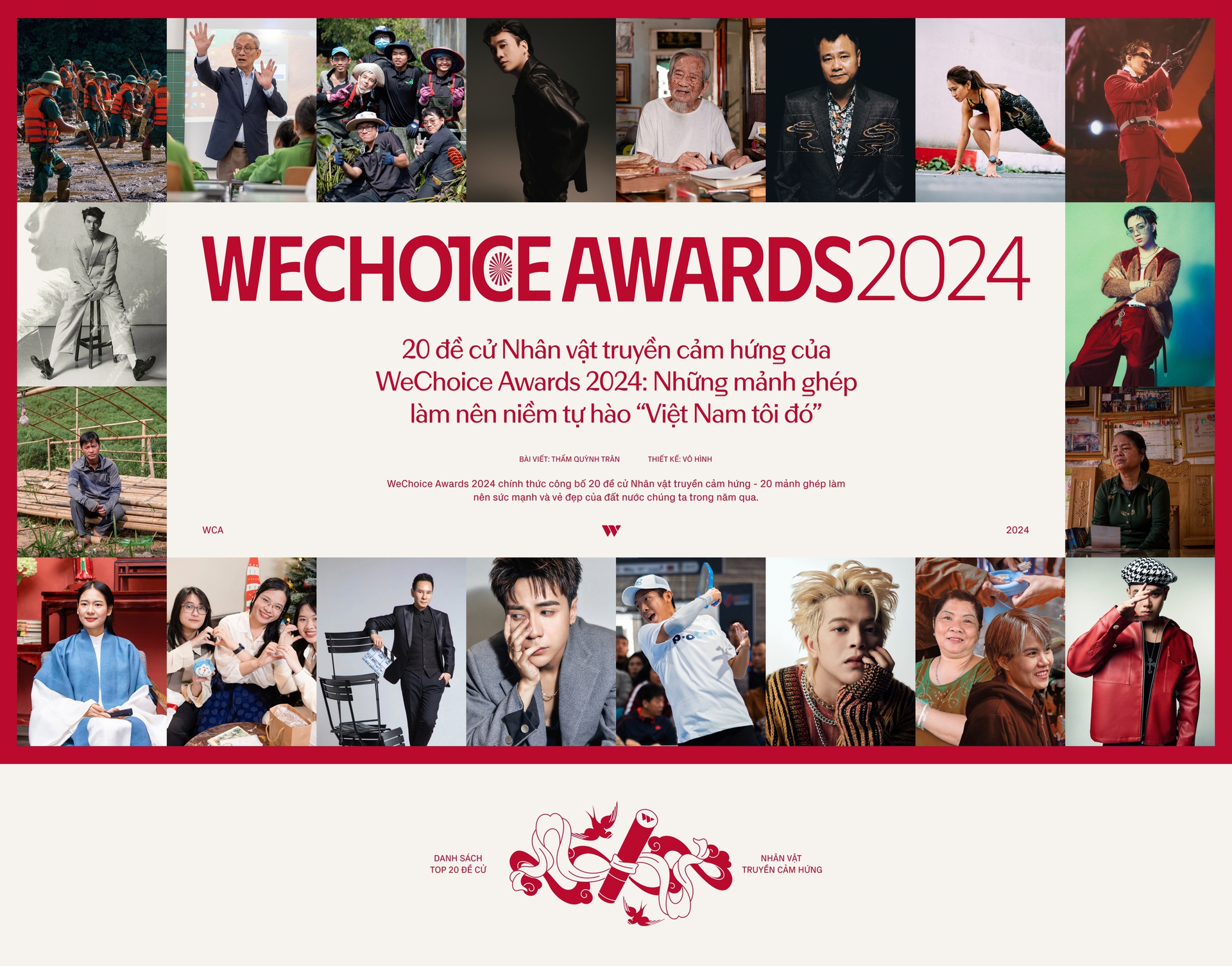 WeChoice Awards 2024 mong muốn 20 câu chuyện, 20 đề cử dưới đây, sẽ mang đến cho cộng đồng những niềm cảm hứng tích cực, để bạn được tiếp thêm sức mạnh và niềm tin vào giấc mơ của bản thân và cộng hưởng bởi tinh thần mạnh mẽ của hàng triệu trái tim khác.