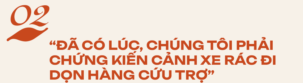 Những ngày sau đó, rất nhiều xe cứu trợ dồn dập đổ về. Hàng hóa chất đống, có lúc, người ta phải… thuê cả xe rác để ‘xử lý’ đồ cứu trợ. Cảnh tượng ấy làm tôi thấy day dứt. Quỹ phải cử cán bộ đứng dọc các điểm vào làng, gặp đoàn nào cũng chia sẻ thông tin để họ chuyển sang xã khác, điểm khác, để tránh sự chồng chéo.