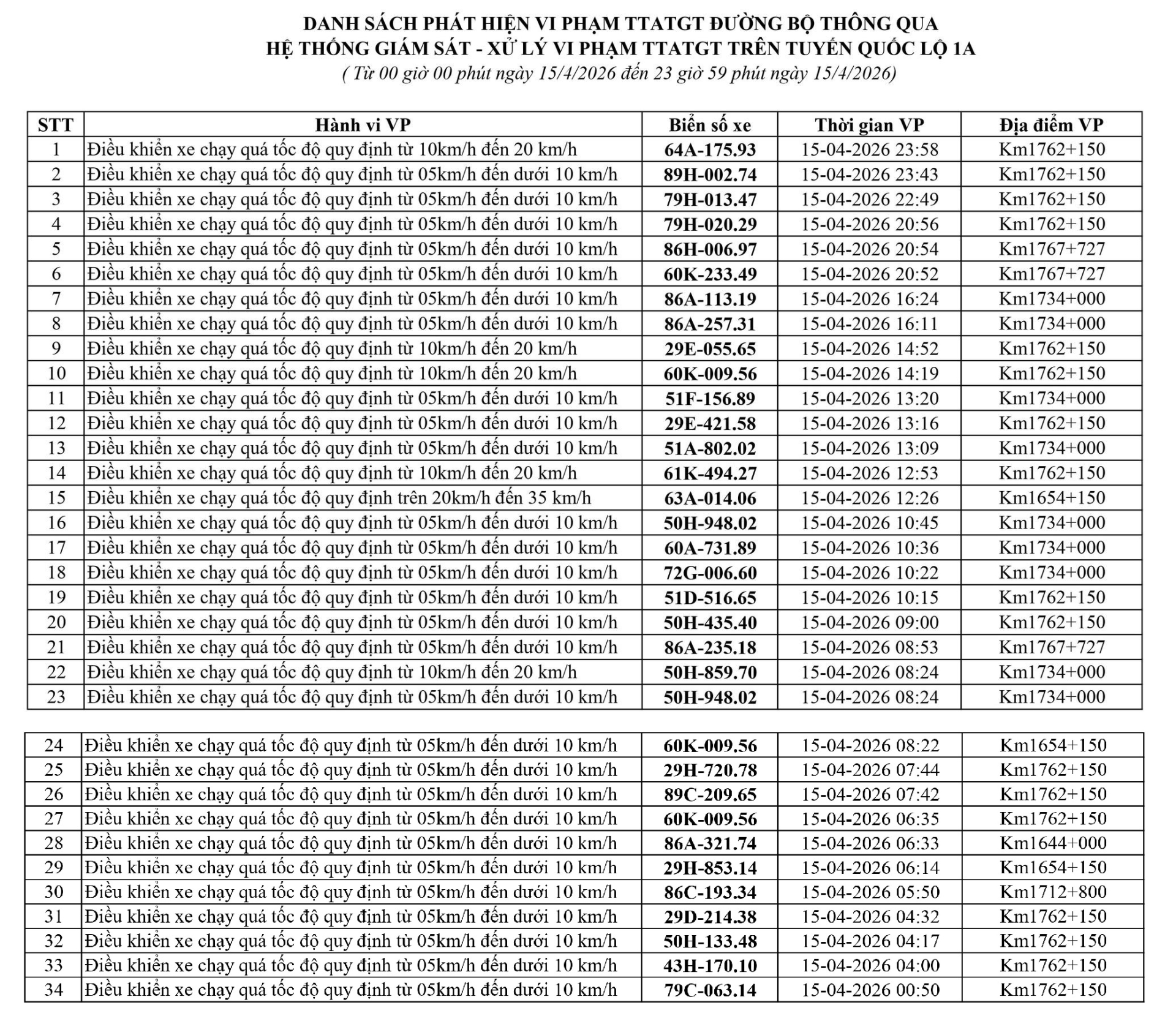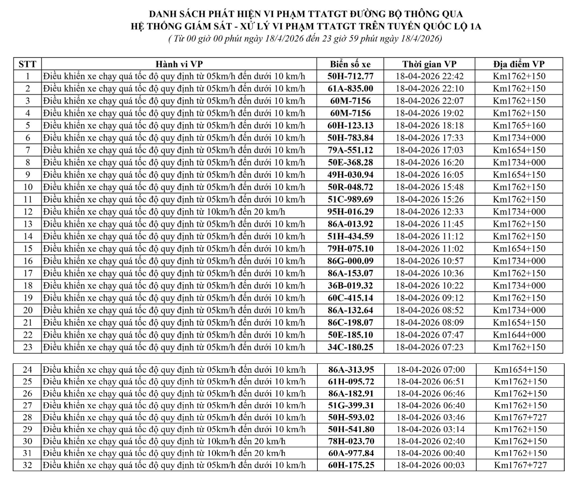 Phòng Cảnh sát giao thông Công an tỉnh Lâm Đồng thông báo, trong tuần từ ngày 12/04/2026 đến ngày 20/04/2026, đã phát hiện 247 trường hợp vi phạm trật tự an toàn giao thông - lỗi chạy quá tốc độ qua hệ thống camera giám sát giao thông và phương tiện thiết bị kỹ thuật nghiệp vụ.
