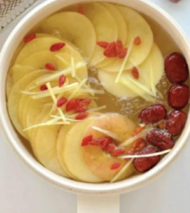 1. Nước táo, táo đỏ, gừng thái lát và kỷ tử - "nước giúp tỉnh táo" vào buổi sáng