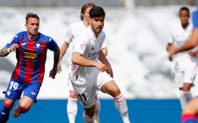 Marco Asensio đá phạt dội xà ngang khung thành Eibar ở phút 21 rồi bị VAR từ chối bàn thắng ở phút 36. Ngôi sao người Tây Ban Nha đánh gót tung lưới đối phương sau pha phối hợp mẫu mực của Real Madrid, nhưng lại rơi vào thế việt vị trong gang tấc.