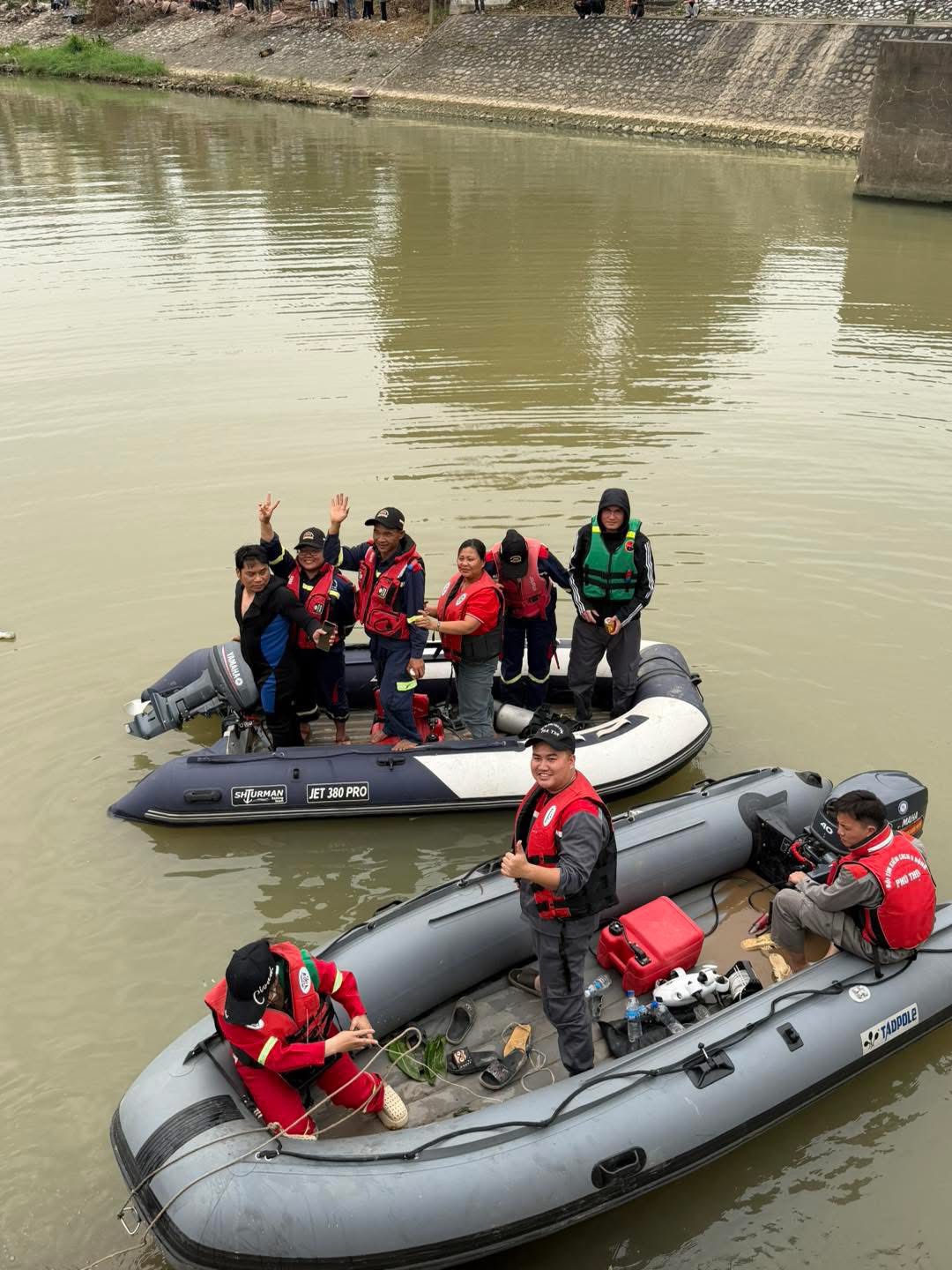 Lực lượng cứu hộ tìm kiếm 3 mẹ con để lại thư tuyệt mệnh trên cống Xuân Quan.
