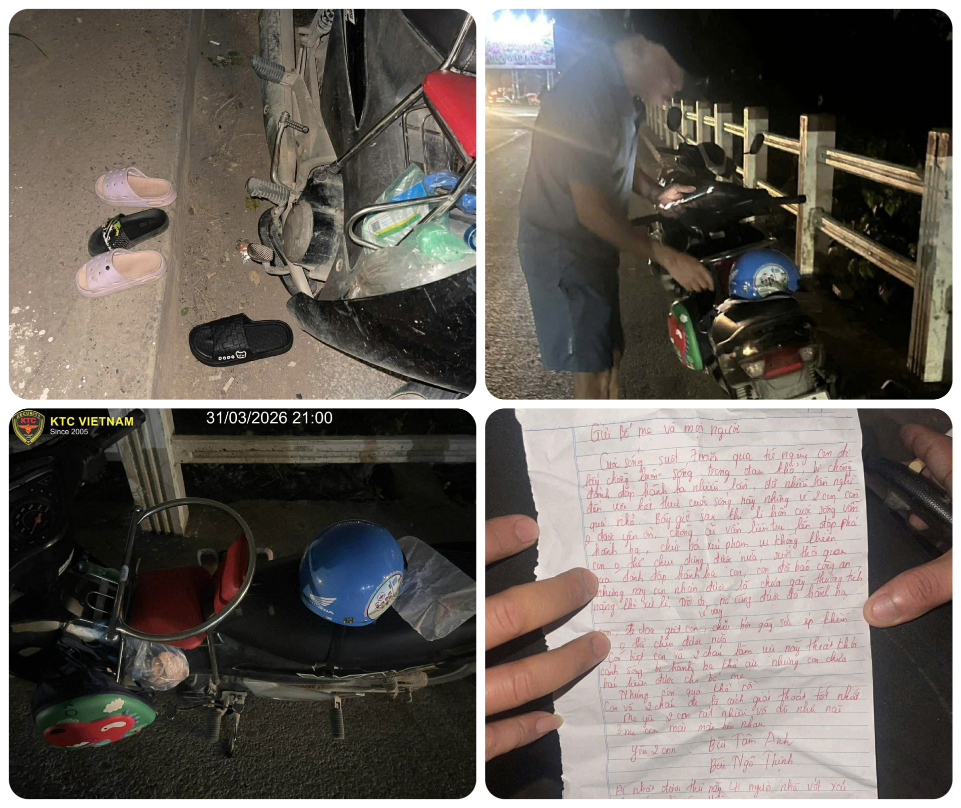 Trước đó đêm 31/3, người dân địa phương phát hiện một chiếc xe máy mang biển kiểm soát tỉnh Hưng Yên và nhiều đôi dép bị bỏ lại tại khu vực cống Xuân Quan kèm theo bức thư được viết bằng mực đỏ.