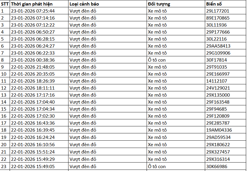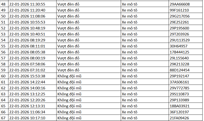 Từ 12h00’ ngày 22/1/2026 đến 12h00’ ngày 23/1/2026, đã phát hiện 66 trường hợp xe máy vi phạm.