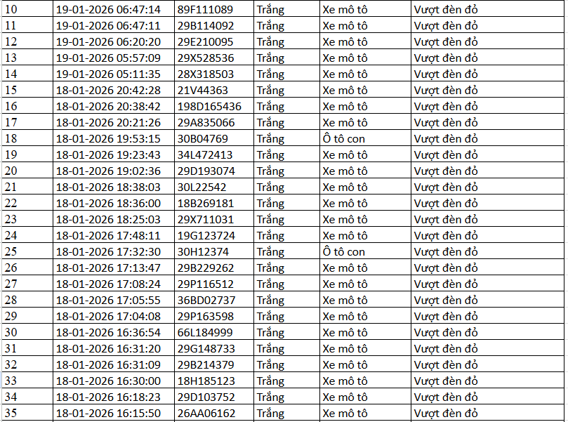 Ngày 19/1, Phòng Cảnh sát giao thông, Công an tỉnh Bắc Ninh thông báo danh sách các phương tiện vi phạm bị phạt nguội từ từ ngày 10/01/2026 đến 16/01/2026.