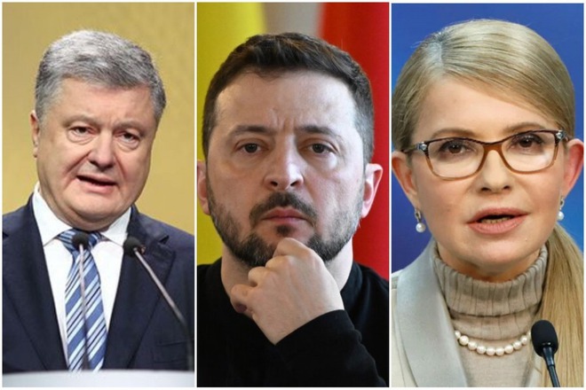 Các đối thủ chính trị của Tổng thống Zelensky: cựu Thủ tướng Tymoshenko (phải) và cựu Tổng thống Ukraine Poroshenko (trái)