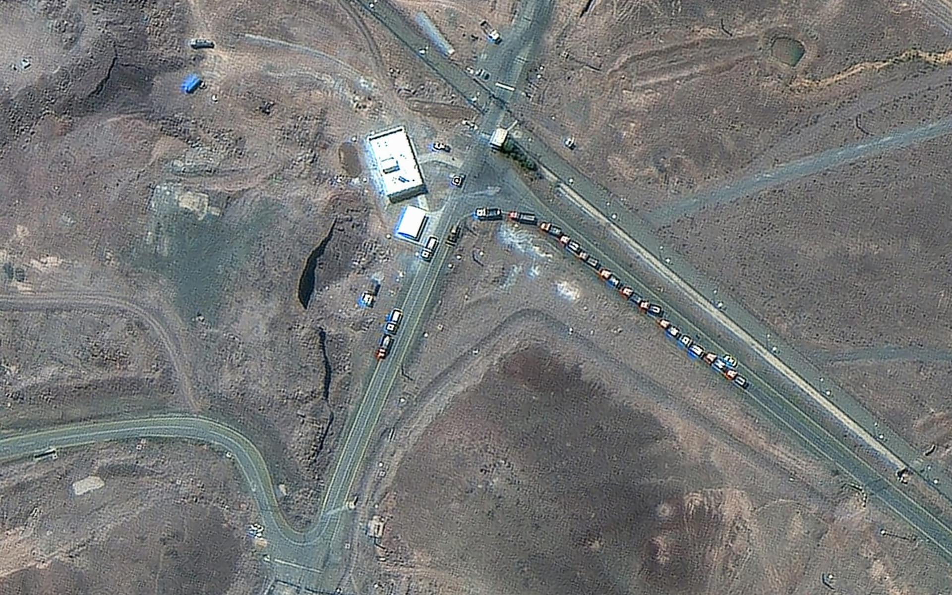 Ảnh vệ tinh cho thấy rất nhiều xe tải tại cơ sở hạt nhân Fordow của Iran vào ngày 19/6/2025. Ảnh: Maxar Technologies