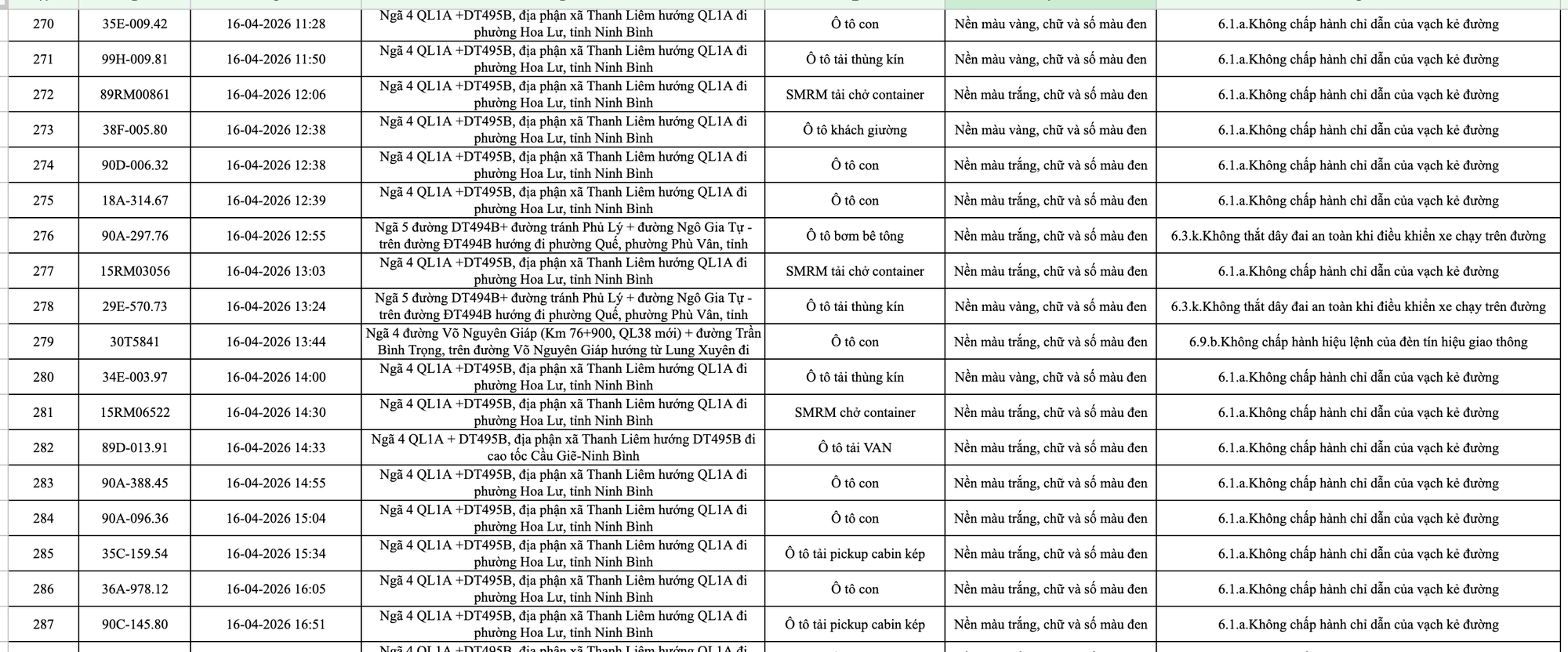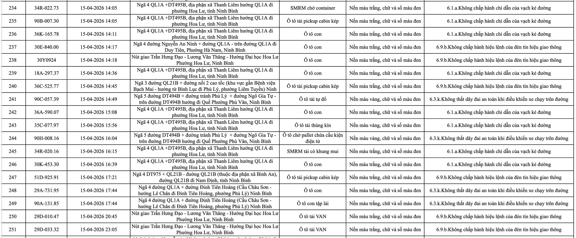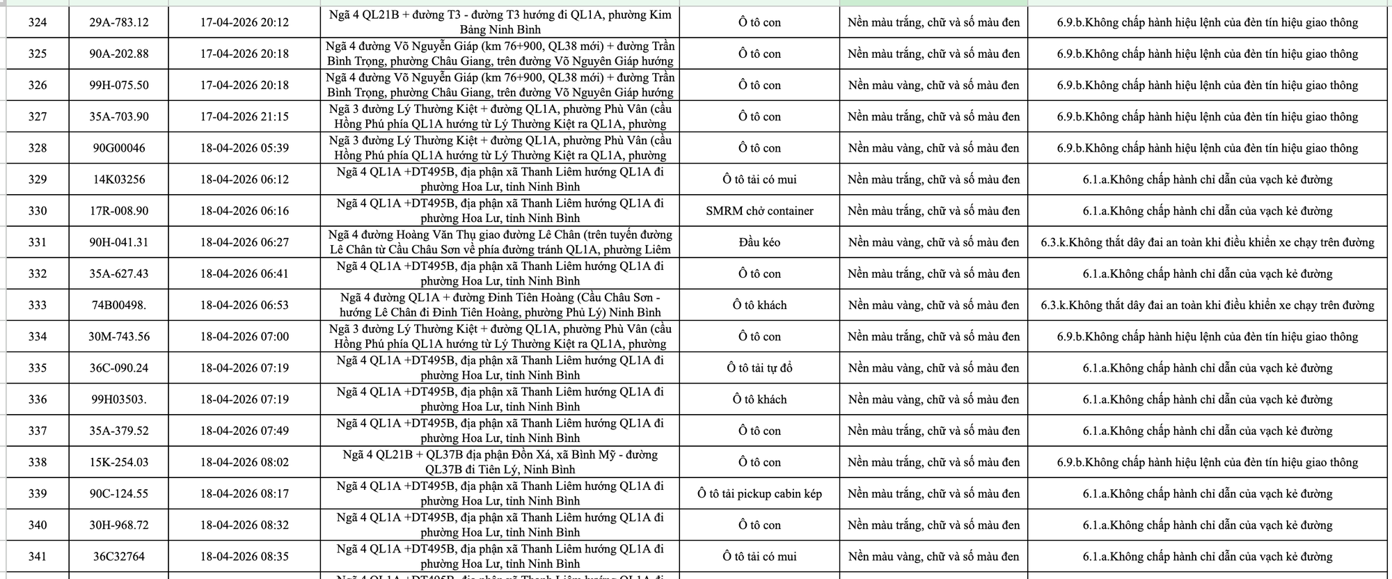 Sau đây là danh sách các phương tiện giao thông vi phạm: Xem tại đây!