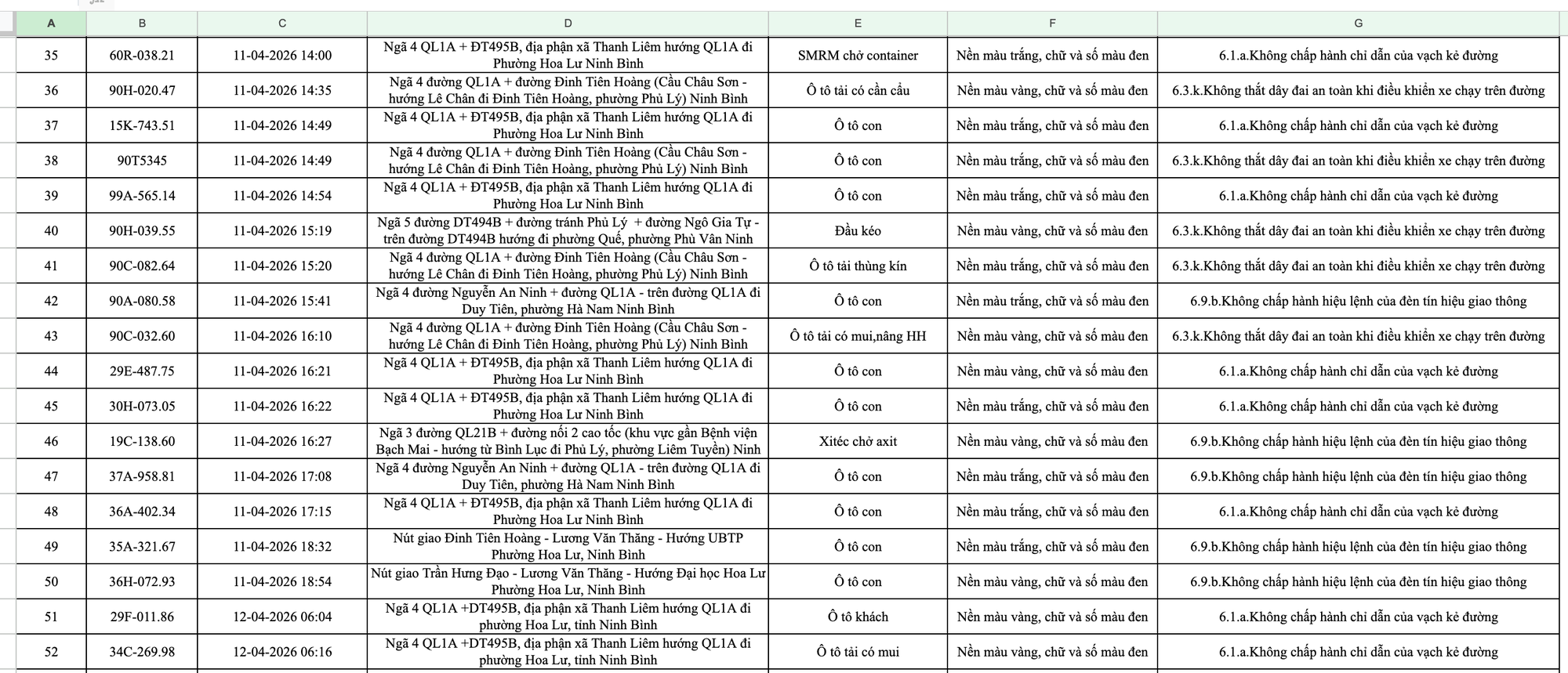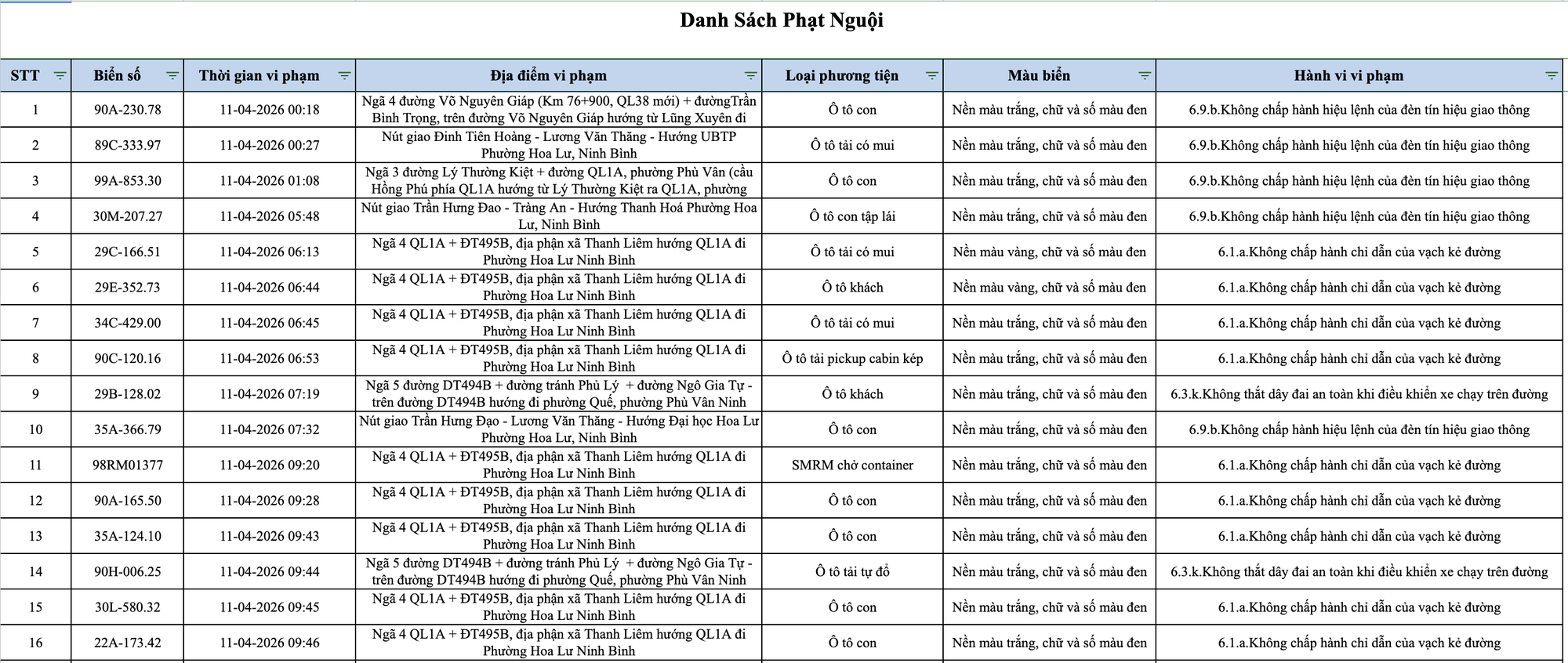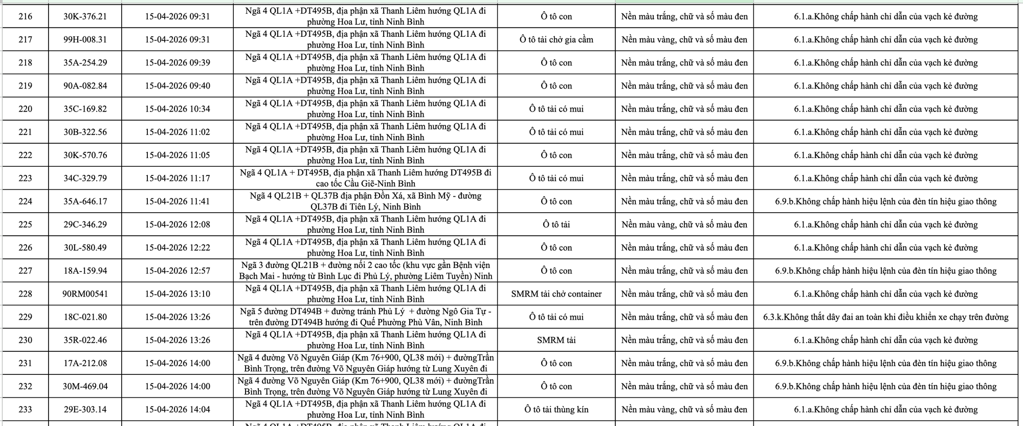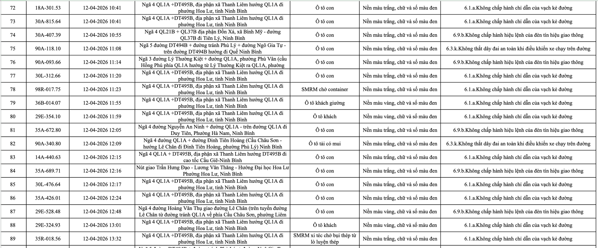 Sau đây là danh sách các phương tiện giao thông vi phạm: Xem tại đây!