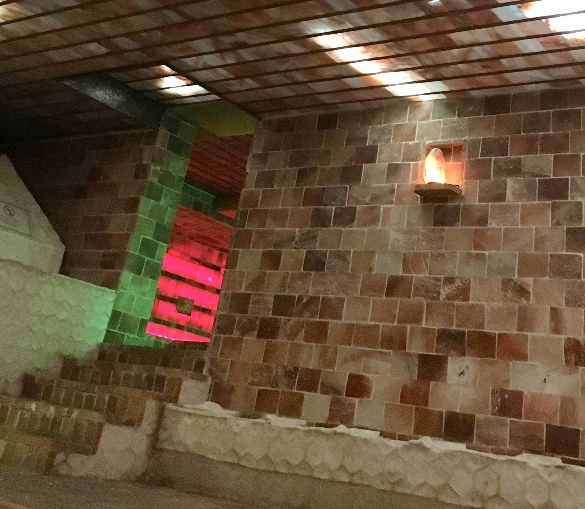 Sau khi ăn uống xong, Hoa và nhóm bạn tiếp tục khám phá các khu xông hơi. Theo lời cô, nơi đây có nhiều phòng với mức nhiệt khác nhau, từ vừa phải cho tới rất nóng, cùng những khu xông hơi đặc trưng như phòng đá nóng, đá cuội…