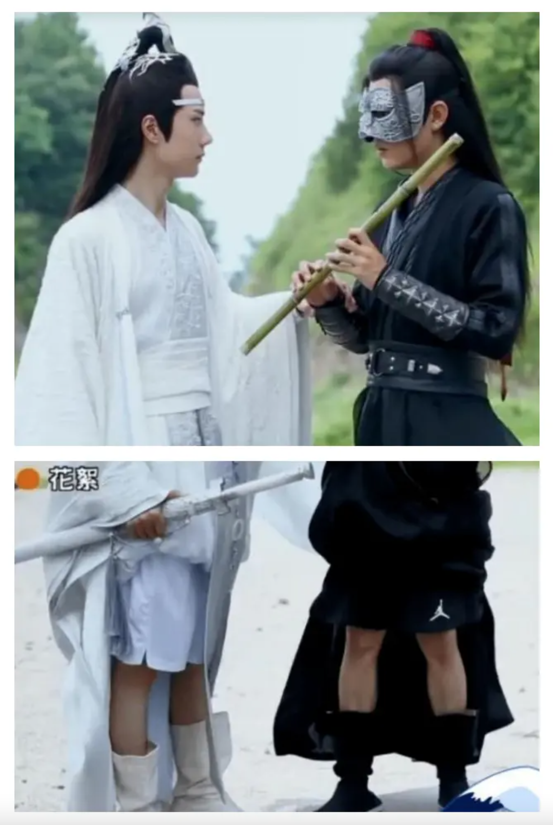 Chẳng hạn, trong hậu trường phim Trần Tình Lệnh, Tiêu Chiến và Vương Nhất Bác đã khiến người hâm mộ bật cười khi nửa trên vẫn mặc trang phục cổ trang trang nghiêm, trong khi nửa dưới lại... mặc quần short hiện đại. Tương tự, khi quay cảnh mùa hè vào giữa mùa đông, diễn viên Trương Nghệ Hưng từng chia sẻ rằng, trong khi nửa thân trên đang diễn những phân cảnh tình cảm, nửa dưới của anh lại được các nhân viên đoàn phim cẩn thận quấn chăn bông để giữ ấm.