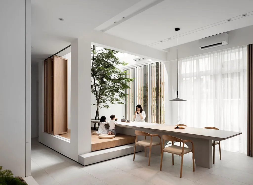 Những yếu tố này không nhằm tạo sự phô trương mà hướng đến việc xây dựng một môi trường sống cân bằng và hài hòa. Khách bước vào sẽ cảm nhận được sự yên bình và dễ chịu, từ đó dễ dàng hòa nhập vào không gian.