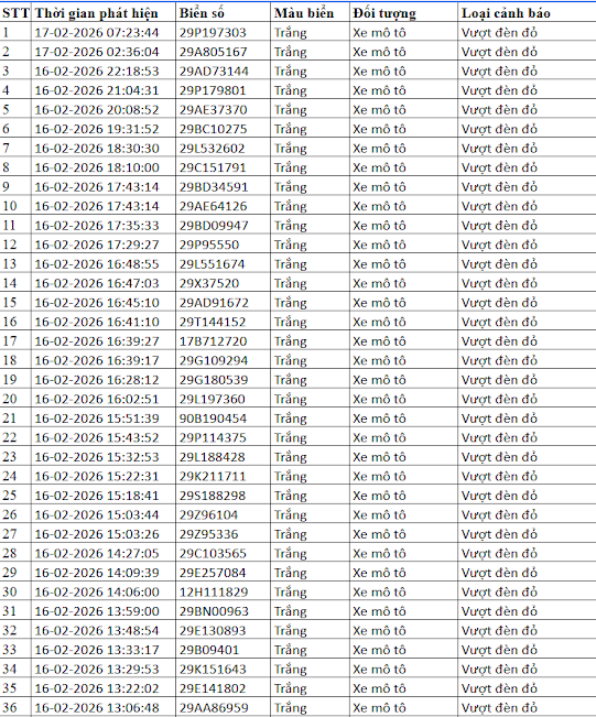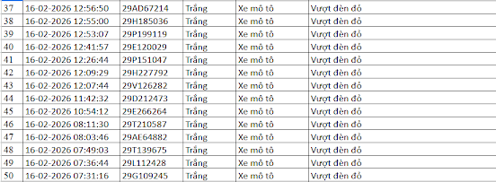 Theo Báo Lao Động, Cục Cảnh sát giao thông cho biết, camera AI thí điểm tại Hà Nội phát hiện nhiều trường hợp bị phạt nguội ngày Tất Niên, mùng 1 Tết. Trong số này có các xe vi phạm lỗi vượt đèn đỏ như sau: