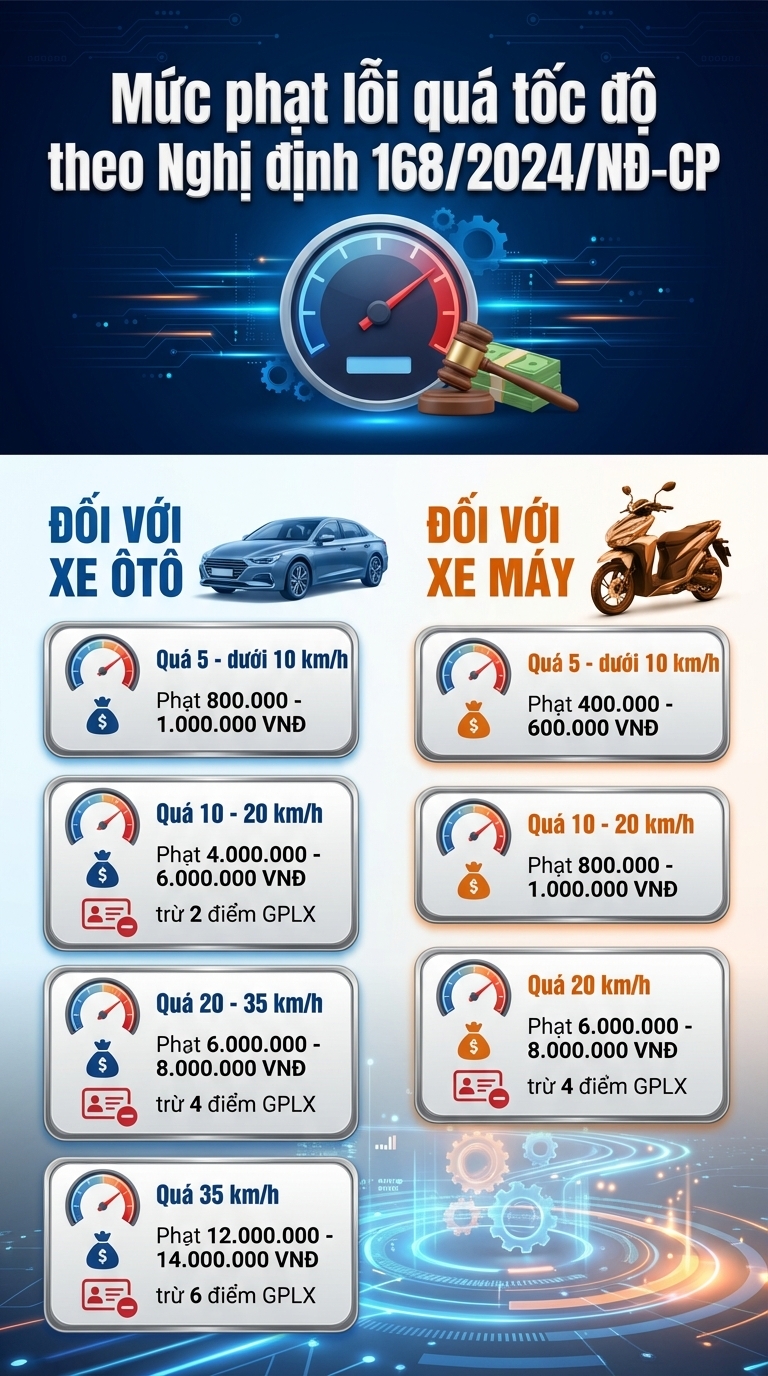 | | 36F1-193.21 | 24-12-2025 10:47 | Điều khiển xe chạy quá tốc độ quy định từ 05 km/h đến dưới 10 km/h |