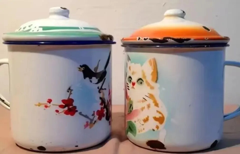 Loại cốc này có lớp men bên ngoài. Khi bị sứt mẻ, phần kim loại bên trong lộ ra và có thể bị oxy hóa, gỉ sét theo thời gian.
