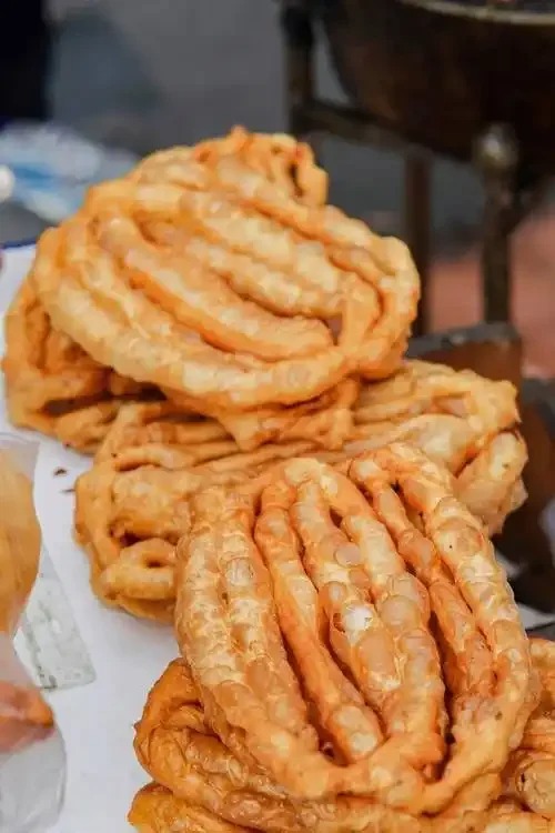 Đã nhắc đến ăn sáng ở Trung Hoa thì không thể thiếu những món chiên ngập dầu, và quẩy 8 múi (Bát phê quả tử) chính là niềm kiêu hãnh của Liêu Thành. Bột lên men tự nhiên được cán mỏng, khía thành 8 dải dính liền ở hai đầu, thả vào chảo dầu sôi nổ lách tách. Khác với chiếc quẩy dài thon thon của Việt Nam dùng để ăn kèm phở, quẩy 8 múi to bè, tròn dẹt, lớp vỏ ngoài giòn rụm, bên trong lại tơi xốp, thơm nức mùi bột lên men.
