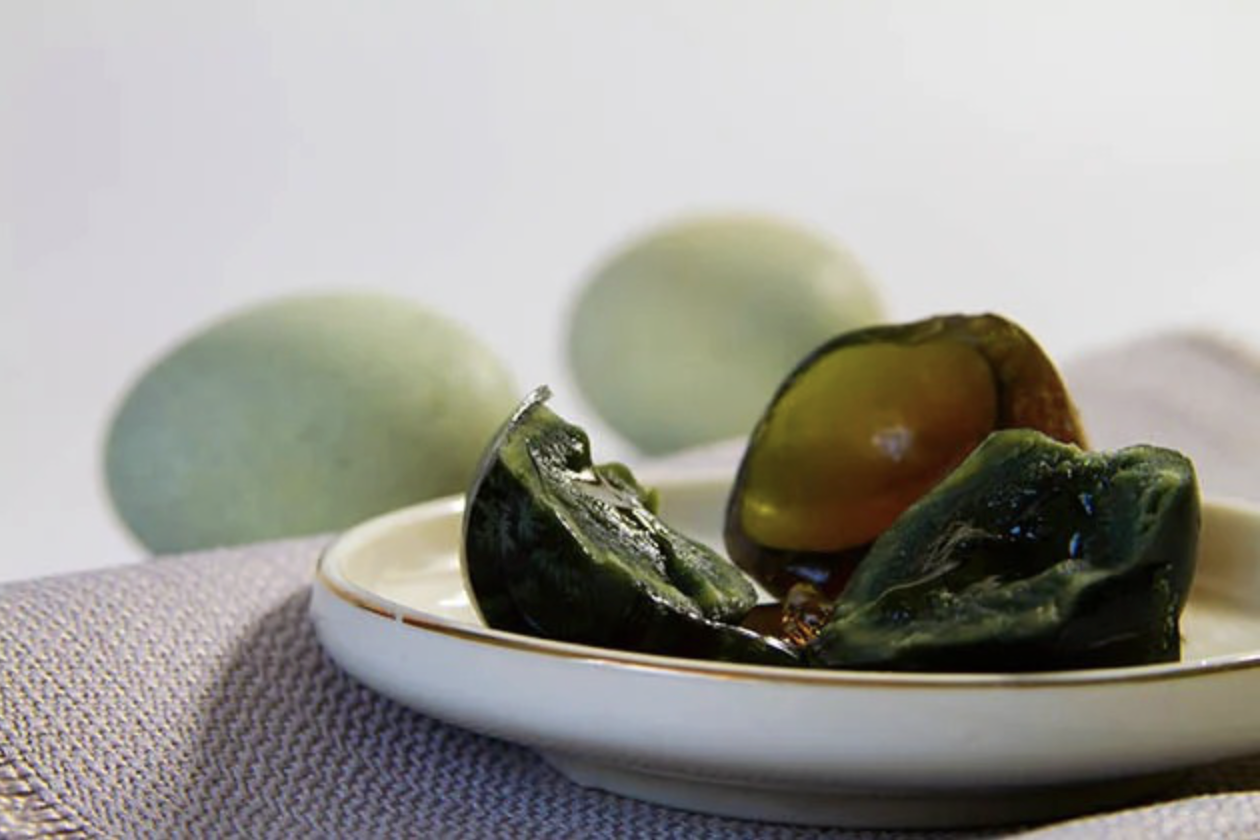 Không quá xa lạ với người Việt, trứng bắc thảo (còn gọi là trứng bách thảo) vẫn đủ sức khiến nhiều du khách "đứng hình" khi lần đầu nhìn thấy. Trứng được ủ trong hỗn hợp đất sét, tro, muối, vôi và trấu suốt nhiều tuần, thậm chí nhiều tháng.