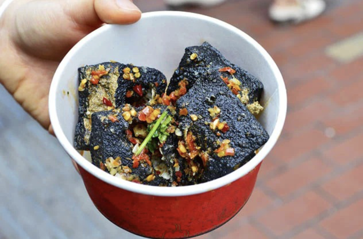 Đậu phụ thối có lẽ là cái tên nổi tiếng nhất trong danh sách những món "nặng mùi". Đây là loại đậu phụ lên men với mùi hương cực kỳ đặc trưng, thường được bán ở chợ đêm hoặc ven đường.