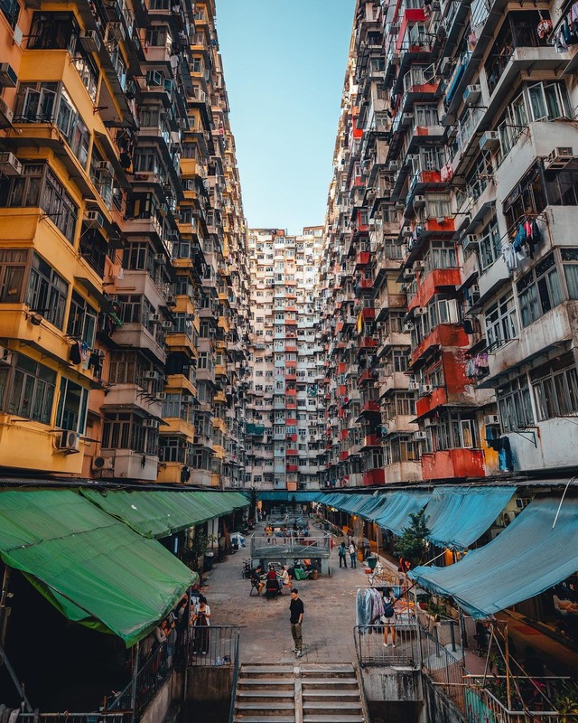 Hong Kong là một trong những nơi có mật độ dân số cao nhất thế giới. Với quỹ đất đô thị hạn chế và dân số không ngừng tăng, giải pháp phát triển nhà ở theo chiều cao là điều bắt buộc. Hệ quả là các tòa nhà không chỉ cao vút mà còn được xây dựng với khoảng cách cực kỳ nhỏ.