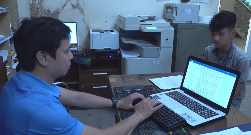Công an làm việc với đối tượng Nguyễn Quốc Hùng - Ảnh: CA Đồng Nai