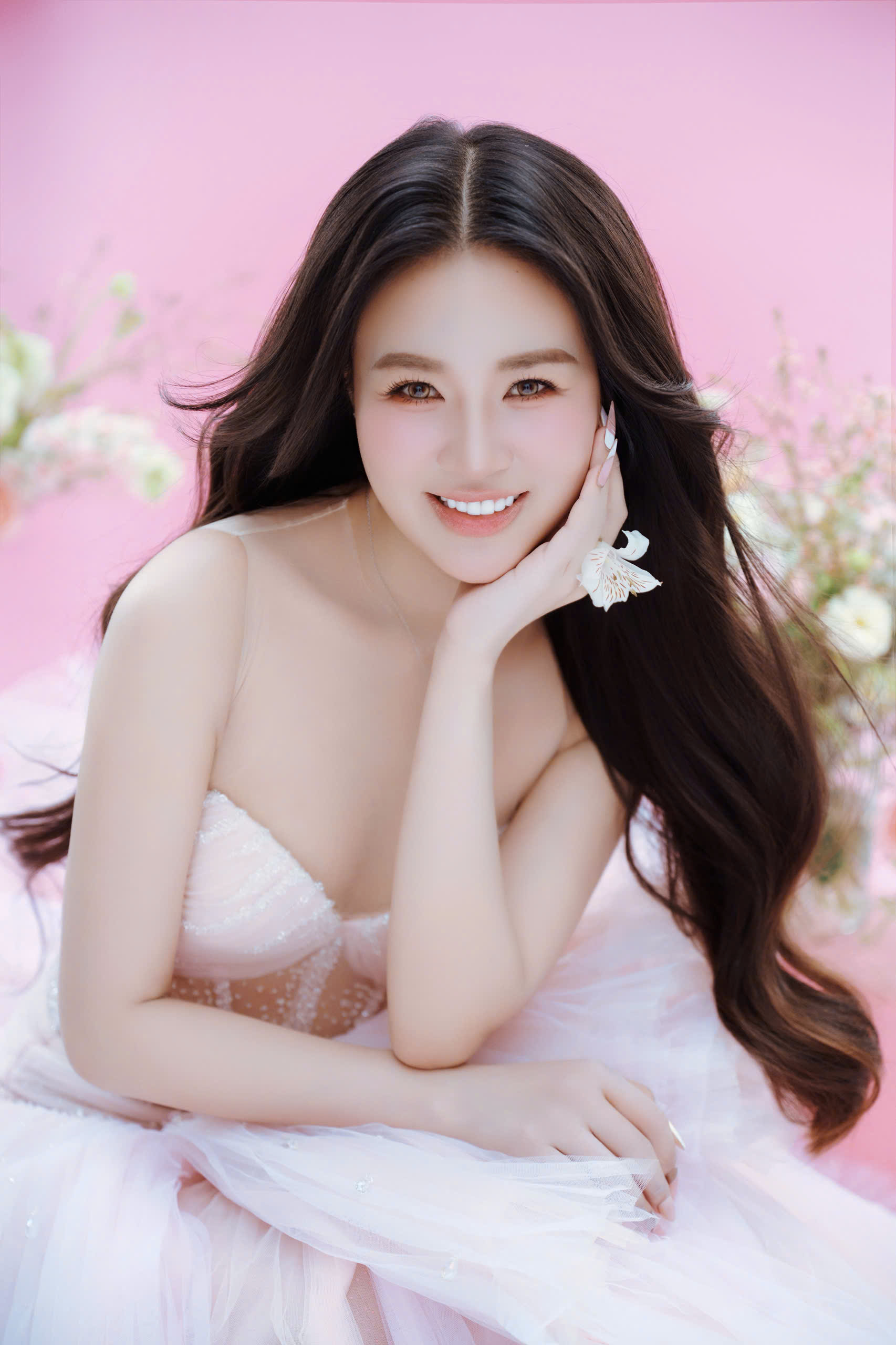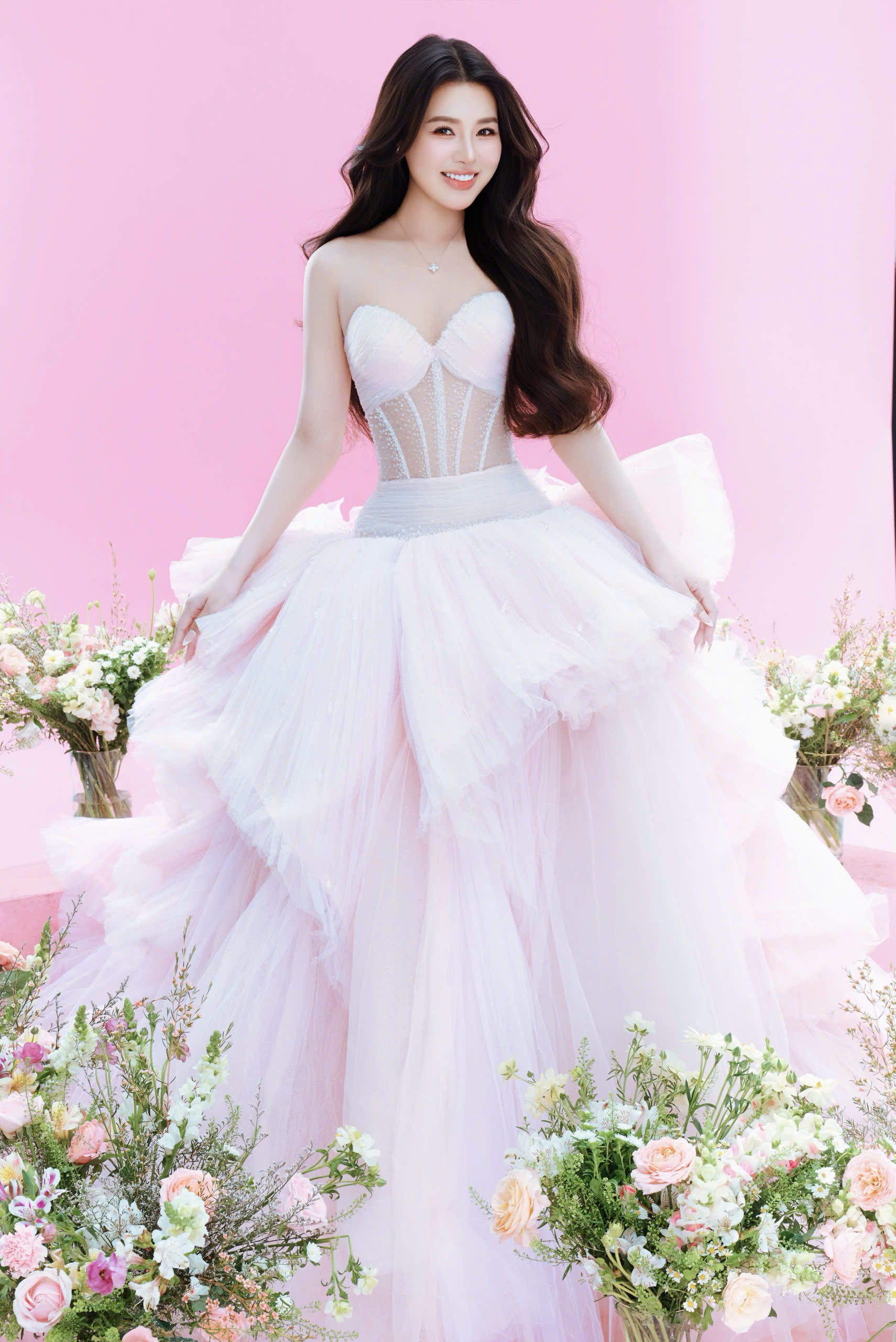 Tổng thể bộ ảnh mang đến cảm giác mềm mại, bay bổng, gợi liên tưởng đến hình ảnh một “nàng thơ” bước ra từ khu vườn cổ tích. Đặc biệt, Hà Trang lựa chọn lối trang điểm trong veo, nhấn nhẹ vào đôi mắt và làn môi hồng tự nhiên, giúp tôn lên gương mặt thanh tú, đường nét hài hòa. Mái tóc dài uốn nhẹ, buông xõa tự nhiên càng làm nổi bật vẻ dịu dàng, nữ tính.