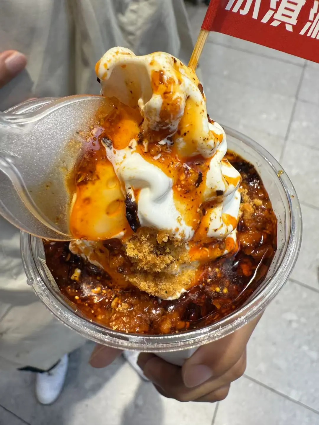 Dù liên tục nhận về vô số rổ gạch đá, ý kiến trái chiều và sự chối từ phũ phàng từ chính những người dân bản địa, nhưng chúng ta không thể phủ nhận một sự thật là kem chan dầu ớt vẫn đang giữ vững ngôi vương là một từ khóa cực hot trên bản đồ du lịch Trùng Khánh, thành công thu hút những đôi chân cuồng đi và những chiếc dạ dày mang dòng máu ưa thích mạo hiểm.