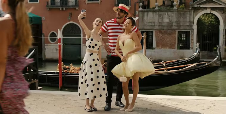 Bên cạnh Rome, Venice xuất hiện như một lát cắt lãng mạn, giàu tính điện ảnh. Những chuyến gondola lướt nhẹ trên mặt nước, ánh nắng Địa Trung Hải chan hòa và kiến trúc cổ kính không chỉ làm đẹp khung hình, mà còn phản chiếu trạng thái cảm xúc “lưng chừng” của các nhân vật. Ở đó, các mối quan hệ đạt đến cao trào, những lựa chọn không còn đơn giản như trước, và Emily cũng buộc phải đối diện với chính mình - giữa tham vọng, tình cảm và cái giá của sự trưởng thành.