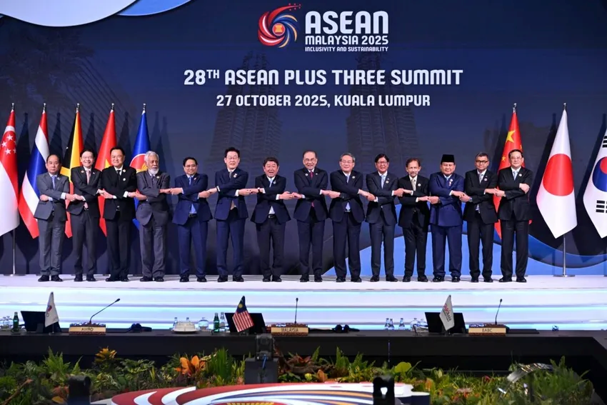 Lãnh đạo các nước ASEAN, Trung Quốc, Nhật Bản và Hàn Quốc tham dự Hội nghị thượng đỉnh ASEAN+3 lần thứ 28 tại Kuala Lumpur, Malaysia, vào ngày 27/10/2025. Ảnh: ASEAN