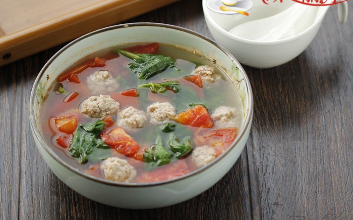 Các bước nấu món canh mồng tơi, cà chua và thịt viên: