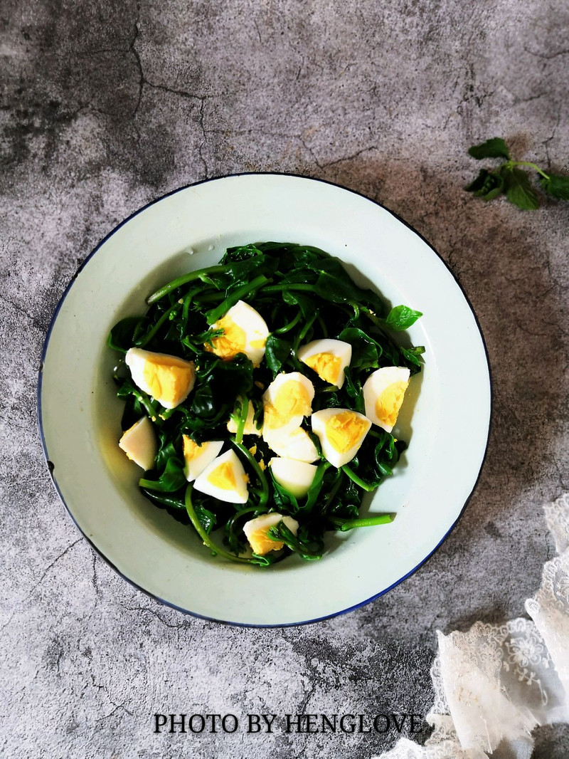 - Trứng vào nồi nước, luộc trong khoảng 6-8 phút thì tắt bếp, vớt ra ngâm vào tô nước lạnh. Sau đó bóc vỏ trứng rồi thành những miếng nhỏ. Tiếp theo bạn cho rau mồng tơi vào đĩa, đặt trứng lên và rưới nước sốt dầu giấm trộn salad vào. Hoặc bạn có thể sử dụng bất cứ loại sốt trộn salad nào mà mình thích.