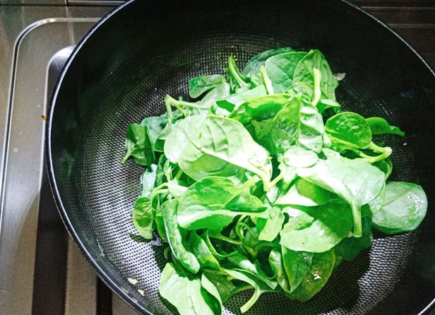 - Nhặt phần lá non rồi rửa sạch rau mồng tơi. Đặt nồi nước lên bếp, đun sôi sau đó cho rau mồng tơi vào chần khoảng 2-3 phút; khuấy vài lần khi thấy rau mồng tơi chuyển màu sẫm hơn thì vớt ra cho vào chậu nước đá. Sau khi rau mồng tơi nguội thì bạn vớt ra, để ráo nước.