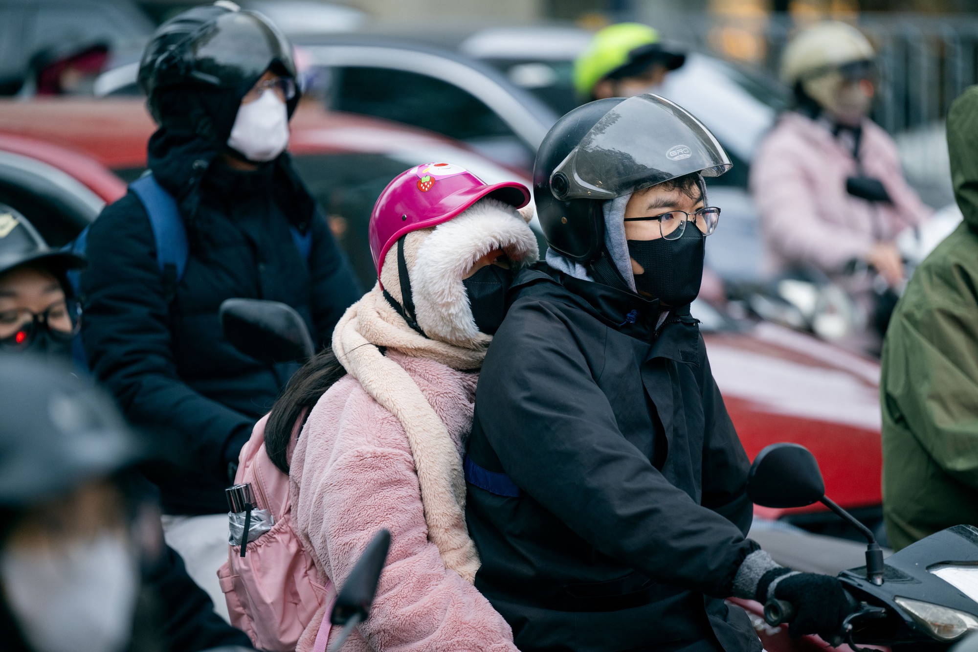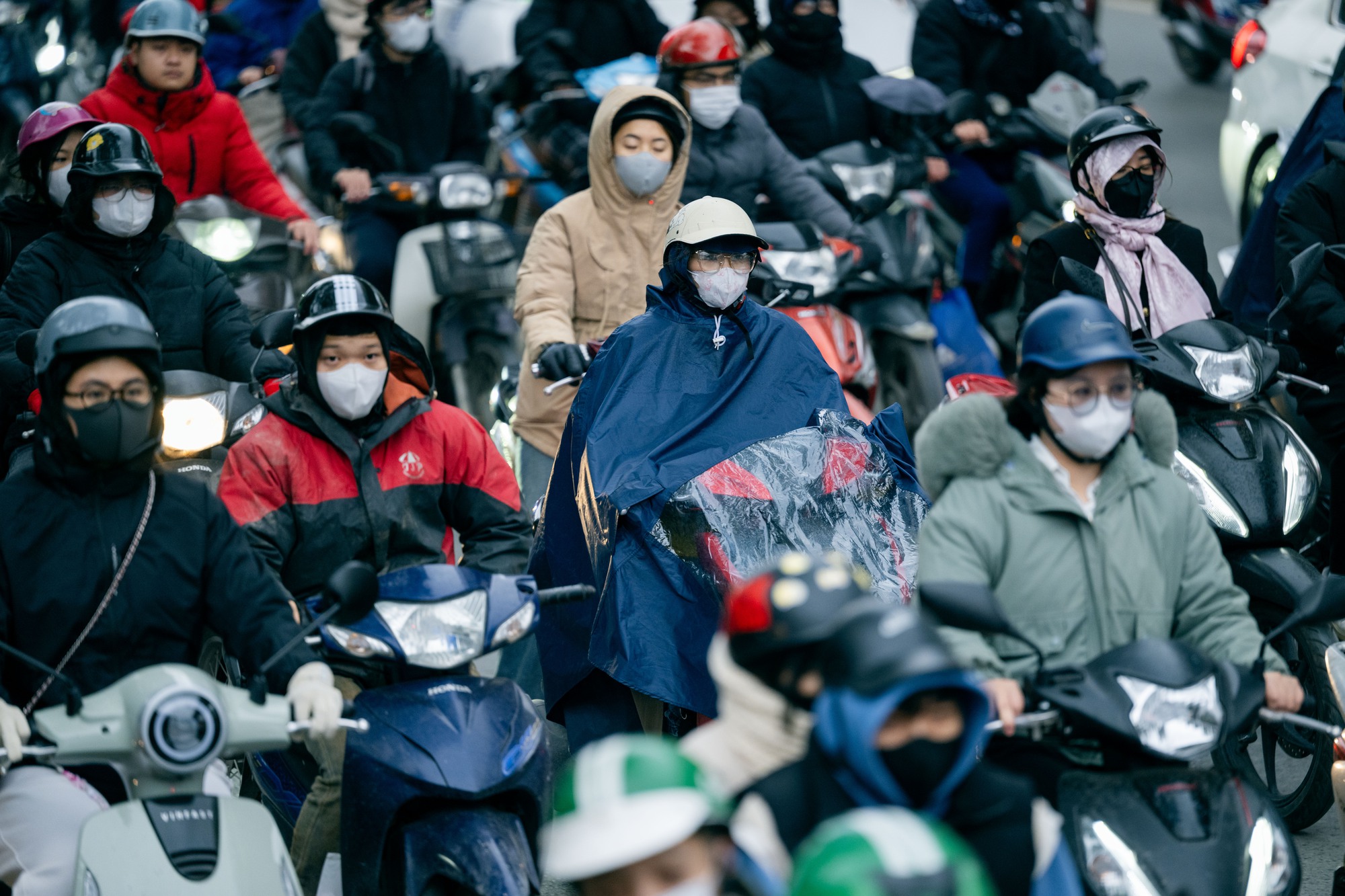 Trời mưa lất phất, nhiệt độ dao động từ 11 đến 13 độ C, có nơi thấp hơn. Trên nhiều tuyến phố, người đi đường đều kín mít áo khoác dày, khăn quàng, găng tay, thậm chí áo mưa được tận dụng như một lớp chắn gió