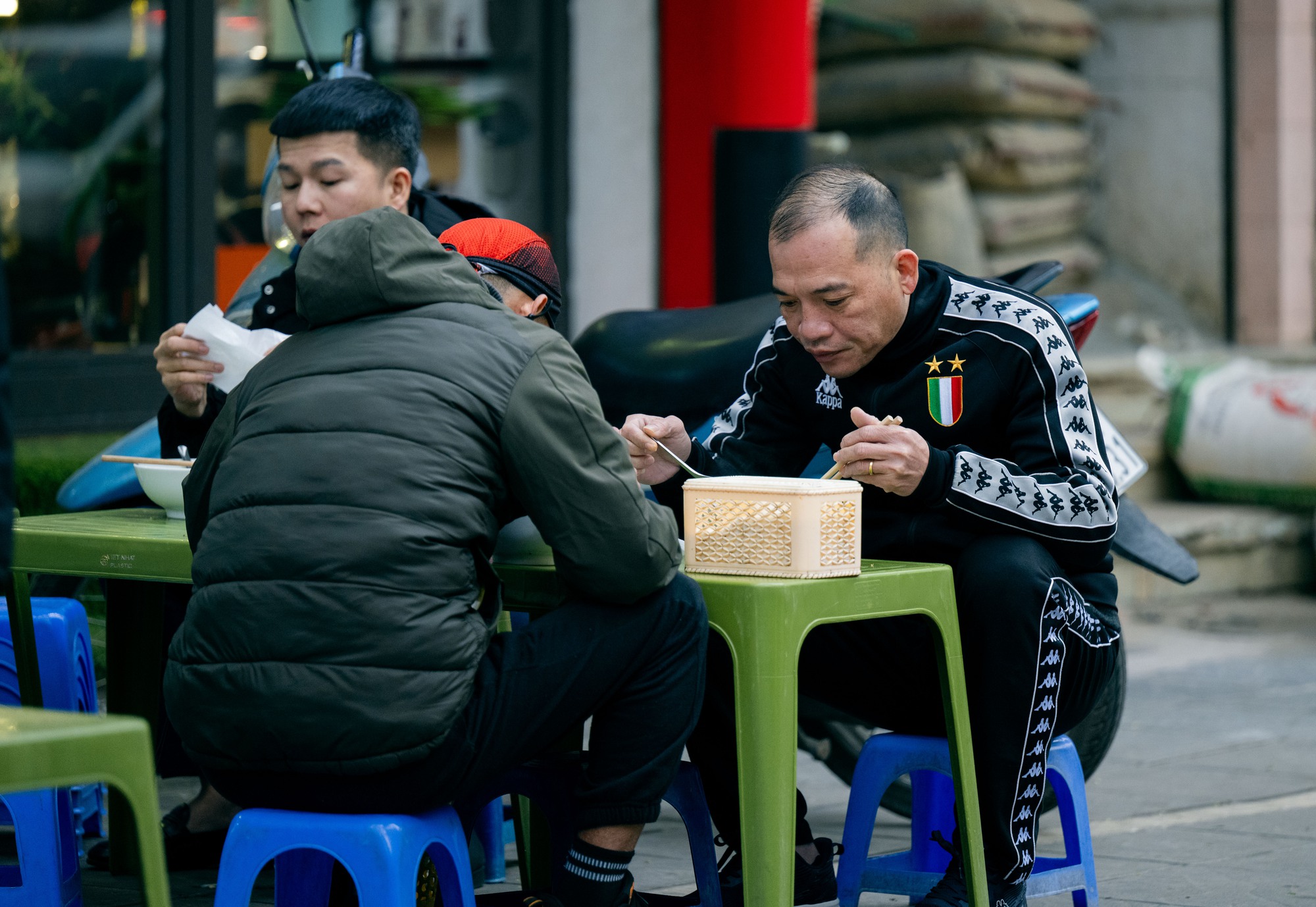 Người dân thưởng thức bát phở nóng ấm ngon lành trong ngày đông lạnh