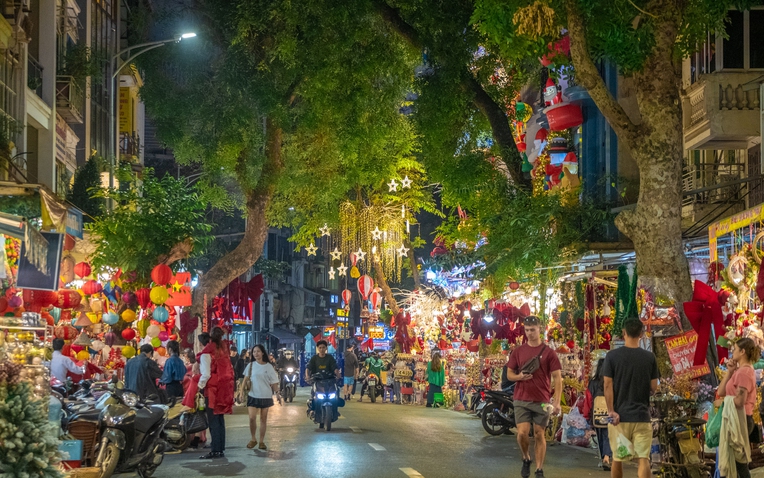 Gần tới dịp Giáng sinh, nhiều tuyến phố và trung tâm thương mại lớn tại thủ đô đều được trang trí lộng lẫy, bắt mắt. (Ảnh; Lữ Phụng Tiên)