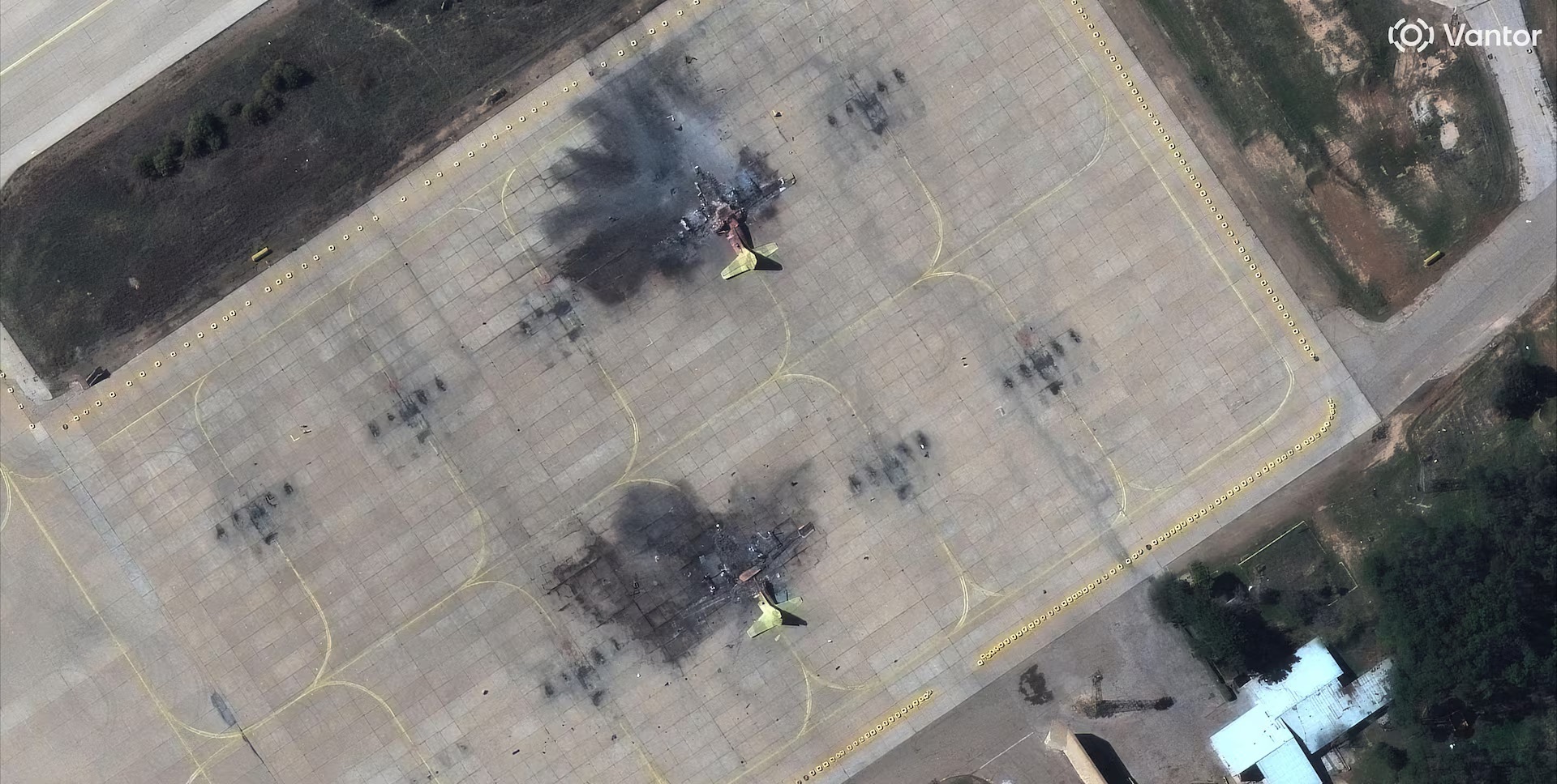 Một máy bay bị phá hủy tại căn cứ không quân Shiraz, Iran, ngày 6/3. (Ảnh: Vantor)