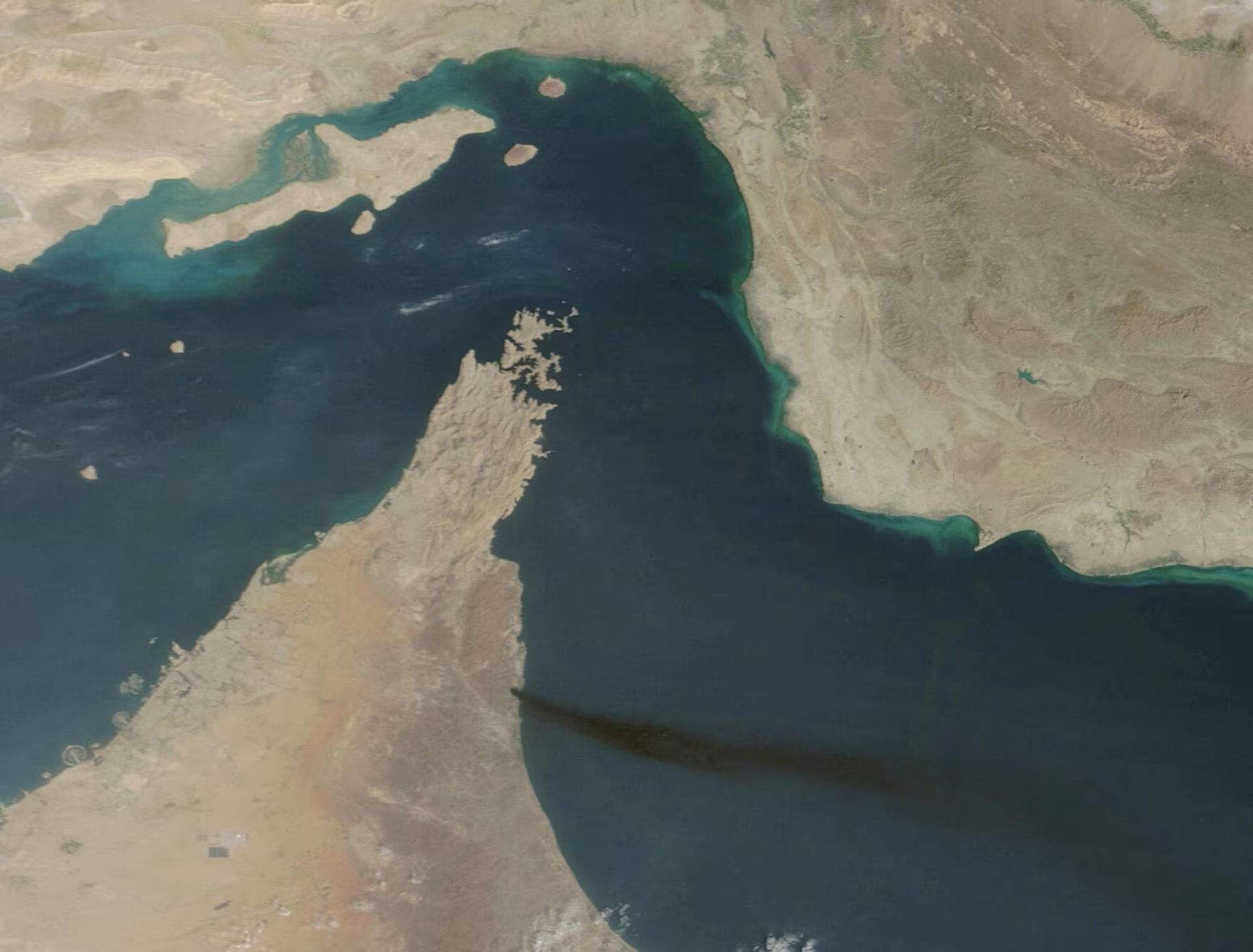 Khói bốc lên từ cảng Fujairah của UAE, ngày 15/3. Fujairah, nằm ngoài eo Hormuz, là điểm xuất khẩu khoảng 1 triệu thùng dầu thô Murban mỗi ngày của UAE – tương đương khoảng 1% nhu cầu toàn cầu. (Ảnh: NASA Worldview)