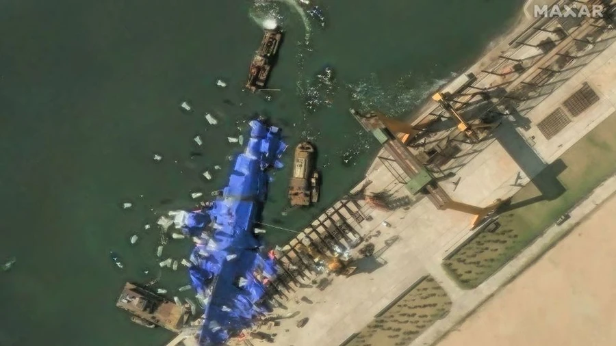 Ảnh vệ tinh tiết lộ Triều Tiên triển khai vật thể lạ tới tàu chiến gặp nạn.