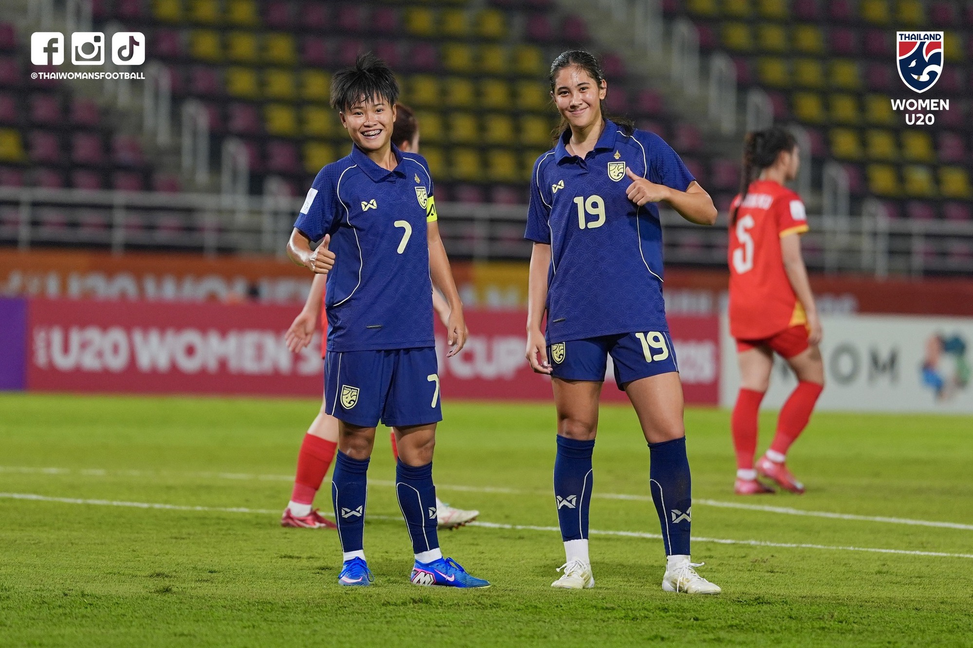 Tới phút 21, cách biệt được nhân đôi. Cầu thủ nhập tịch Madison Casteen kiến tạo cho Rinyaphat Moondong ghi bàn nâng tỉ số lên 2-0 cho U20 nữ Thái Lan.