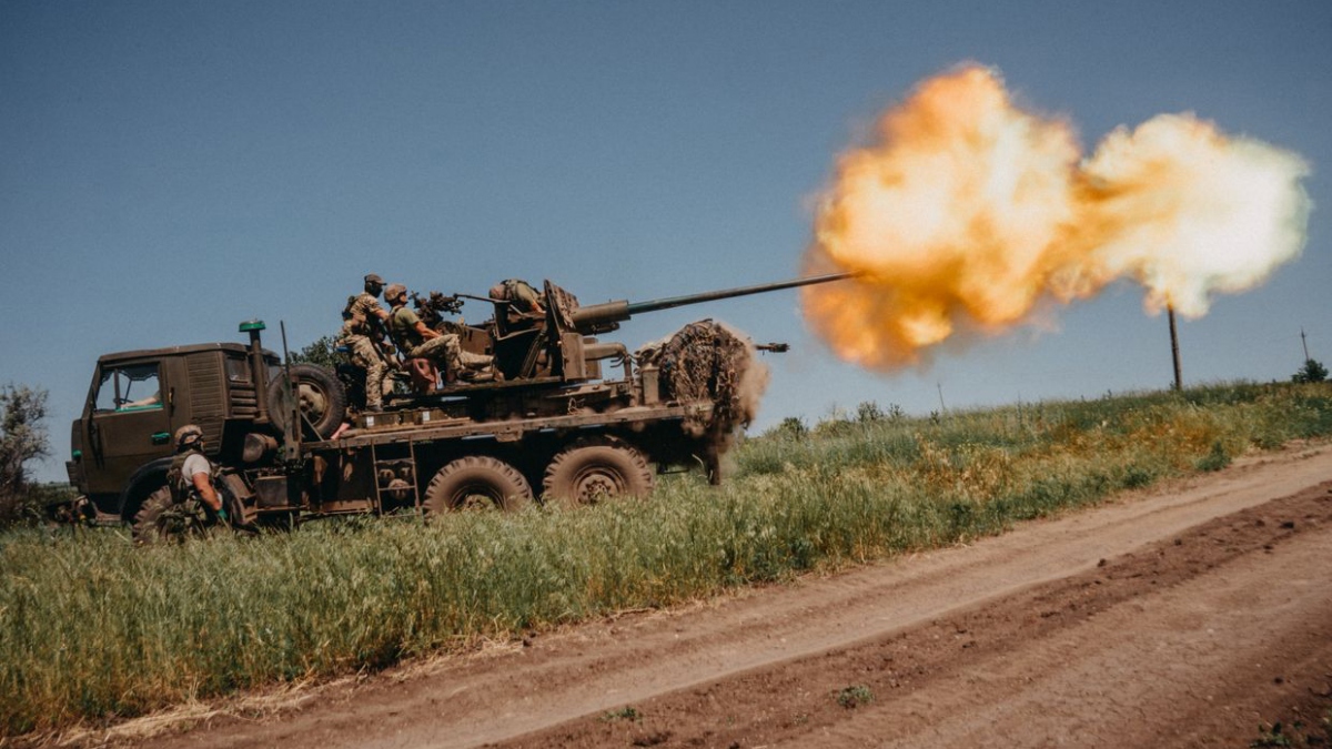 Các binh sĩ Ukraine thuộc Tiểu đoàn phòng thủ lãnh thổ số 60, bắn đạn vào các vị trí của Nga bằng khẩu pháo phòng không S60 đặt trên một chiếc xe tải, bên ngoài Bakhmut, ngày 19/6/2023. Ảnh: Getty