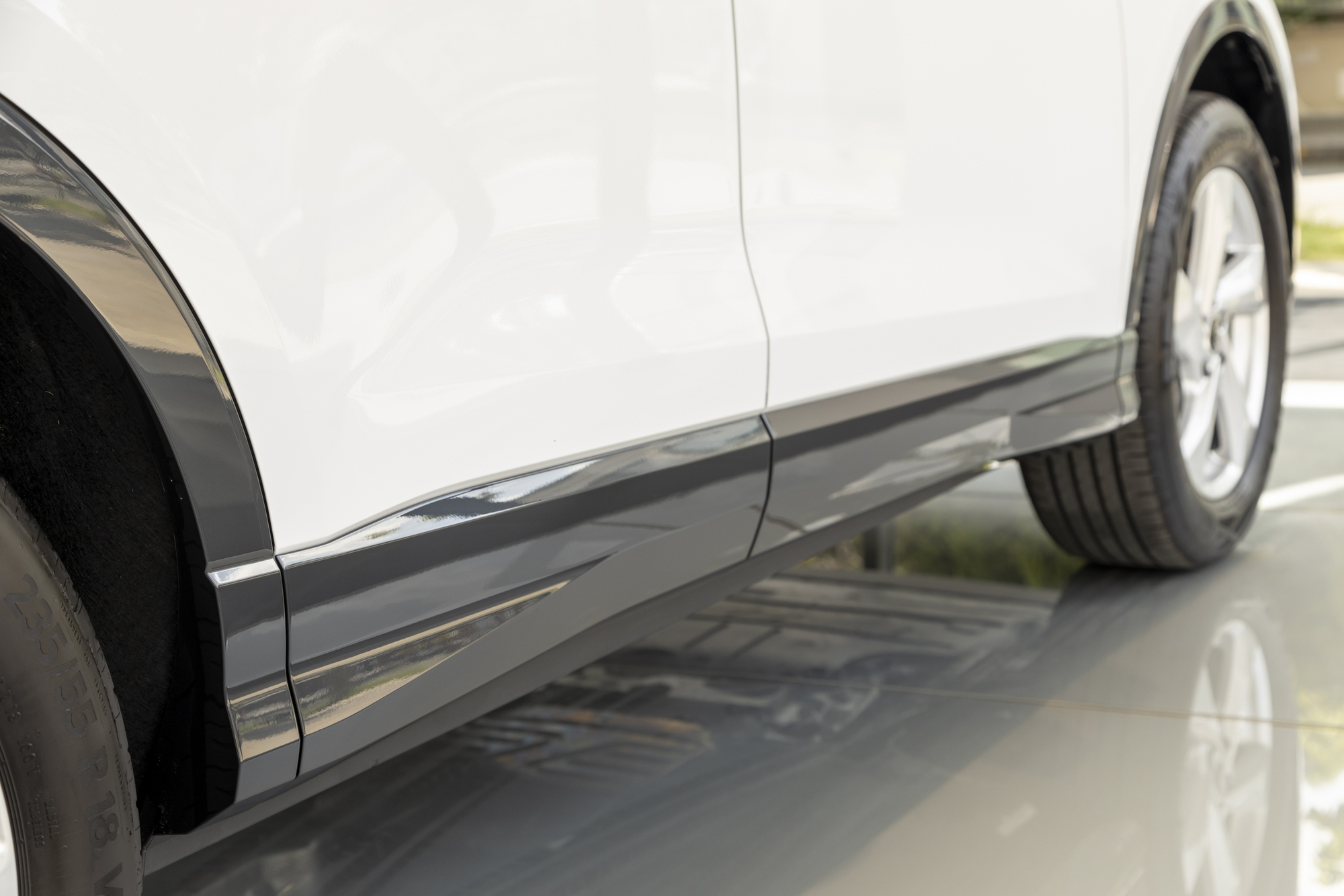 Ở bên hông, Audi Q3 2024 sử dụng bộ mâm 5 chấu đơn kích thước 18 inch sơn bạc, đi kèm lốp 235/55. Đây là loại vành cơ bản nhất. Gương xe tích hợp camera 360 độ và đèn báo rẽ.
