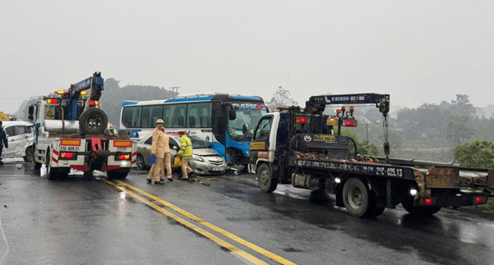 Bước đầu cơ quan chức năng xác định, xe Vios đâm vào hộ lan, xe Xpander và xe khách liền sau không giữ khoảng cách nên xảy ra đâm va.