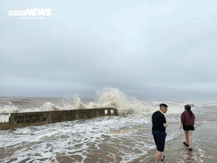Trước đó, vào buổi sáng cùng ngày, nhiều người dân hiếu kỳ tìm ra khu vực bờ biển vui chơi, chụp ảnh bất chấp biển động, gió lớn.