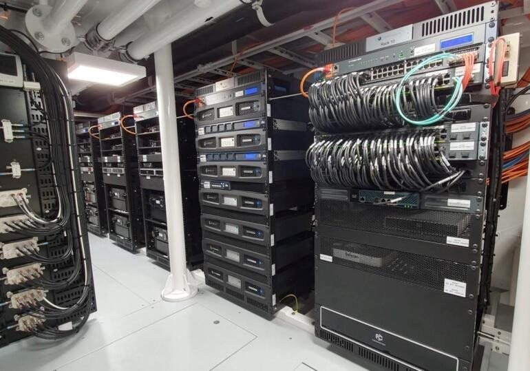 Mỗi chiếc du thuyền có kích thước bằng một sân bóng đá cần rất nhiều server và hàng dặm dây cáp để vận hành.