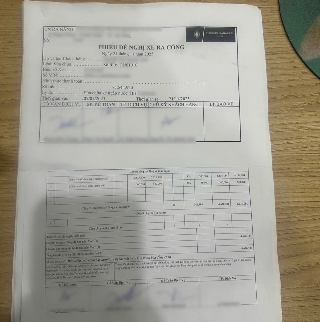 Một người dùng MG HS tại Đà Nẵng phải chờ phụ tùng sửa chữa gần 5 tháng, dù đã trả trước 62 triệu đồng (Ảnh: MG Đà Nẵng).